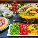 ארוחת הבוקר מוגשת כל בוקר במסעדה.